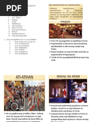 Mga Pagdiriwang na Panrelihiyon. To downloadprint click on pop-out icon or print icon to worksheet to print or download. Pasko ika- 25 ng Disyembre Araw ito ng paggunita sa pagsilang ni Hesus misa de gallo o simbang gabi Ito ay nagsisimula mula sa ika- 16.